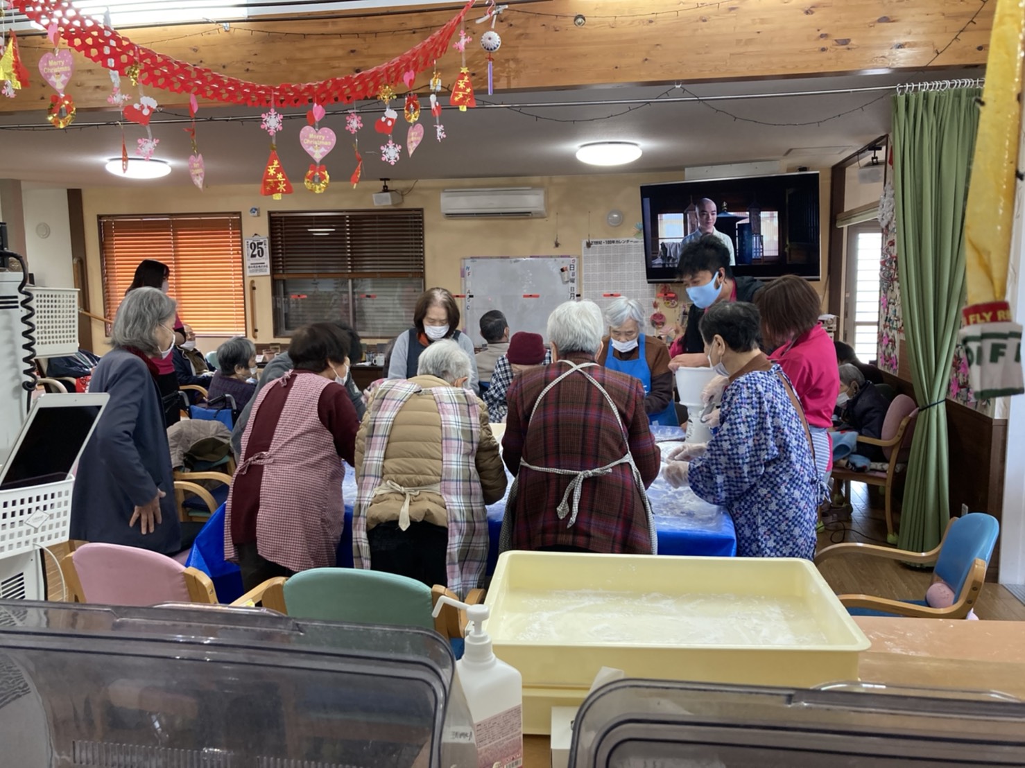 利用者様に丸めてもらって…職員や職員さんの家族も交えてペッタンペッタン!