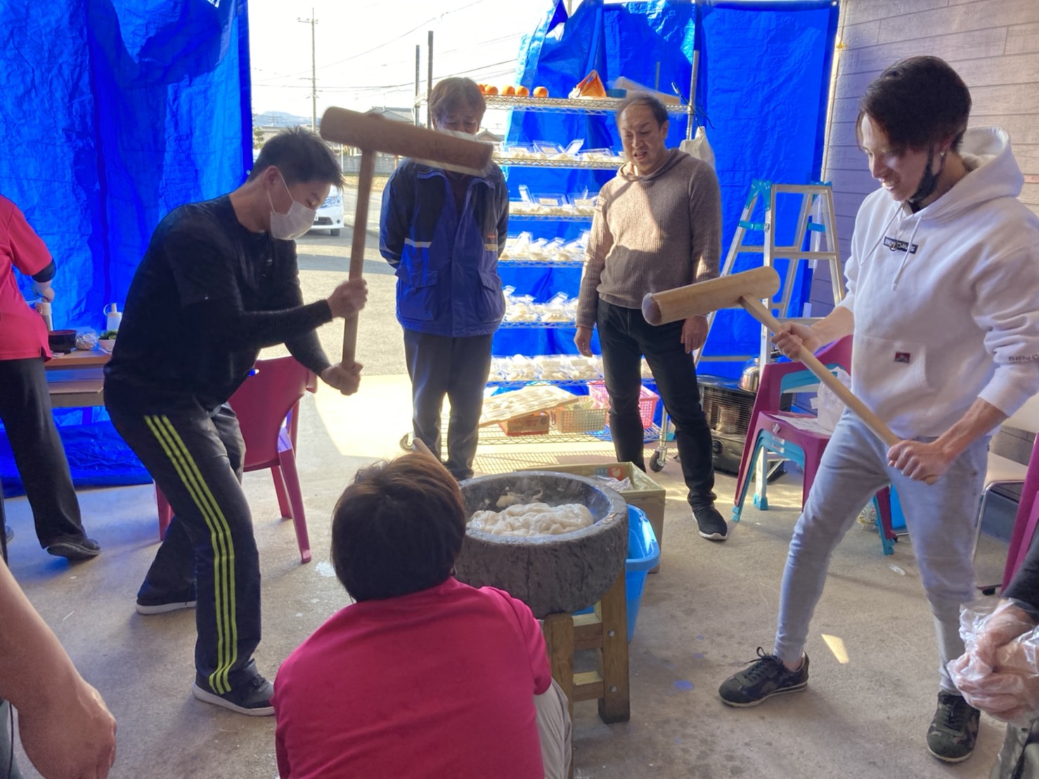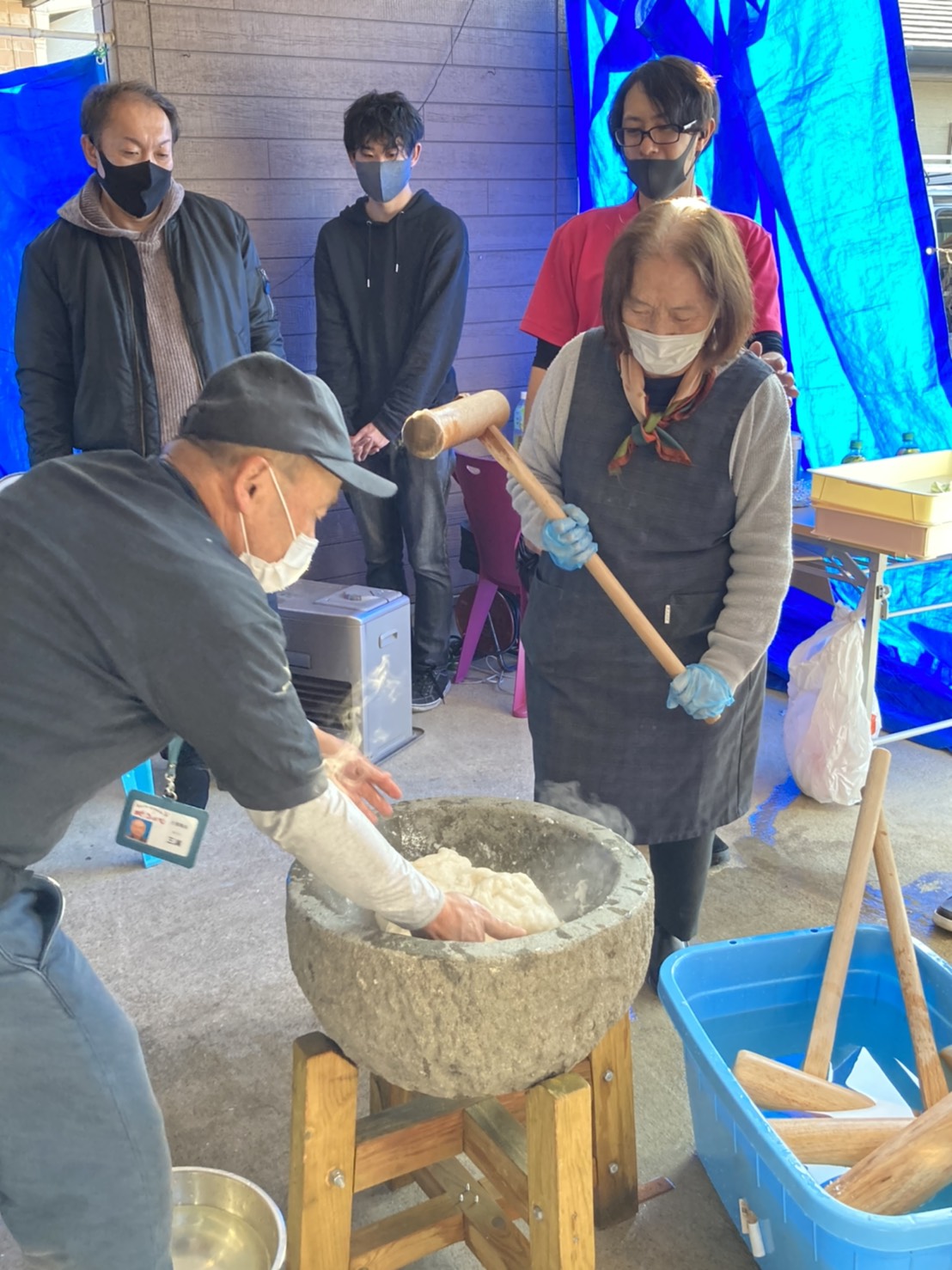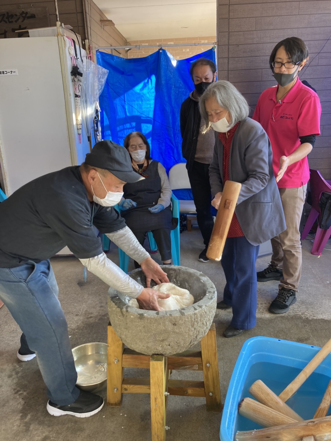 今日はみんなで餅つきをしました!