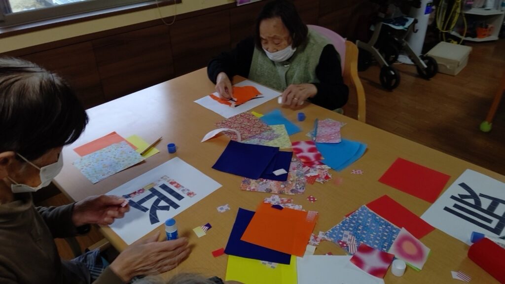 コラージュ文字by momohana2024年1月20日2024年1月23日 本日はコラージュ文字ということで 今年の干支の辰の文字を折り紙でデコレーションして頂きました︎💕︎ 思い思いの色で貼り付け✨ 色々あって素敵😍 ちょっと難しい方にはもうすぐやってくる節分の色塗りを こちらもカラフルで素敵でした✨ タグ:カラフルコラージュ文字干支色塗り辰