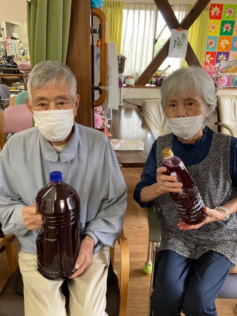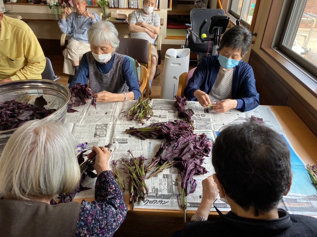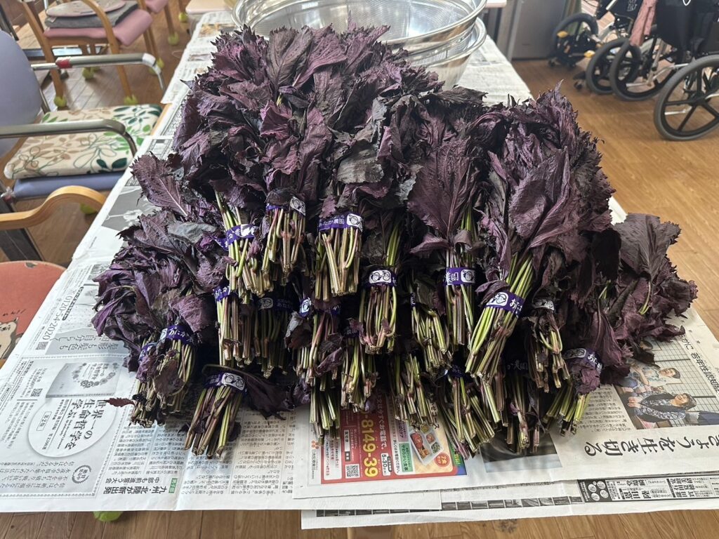 紫蘇ジュース作り、第2弾🥤by momohana2024年6月15日2024年6月14日 第2弾は、紫蘇21束(約5kg)の赤紫蘇を使って紫蘇ジュースを作りました😊あたか農園さんの赤紫蘇は1つ1つの歯が大きくて、とても綺麗で扱いやすいです😍 みんなで、紫蘇の葉をちぎりました😊指を良く使うので、指の運動になります🏃♀️ ザルとペーパータオルでしっかり濾して、砂糖とクエン酸を入れたら完成です👏 出来上がったら、氷で冷たーーーーくして、みんなで飲みました☺️🍻💕夏バテ解消にとても良いです😊 タグ:クエン酸の効果ジュース作りみんな喜ぶ夏バテ解消夏バテ防止手指訓練綺麗な色美味しい赤しそ