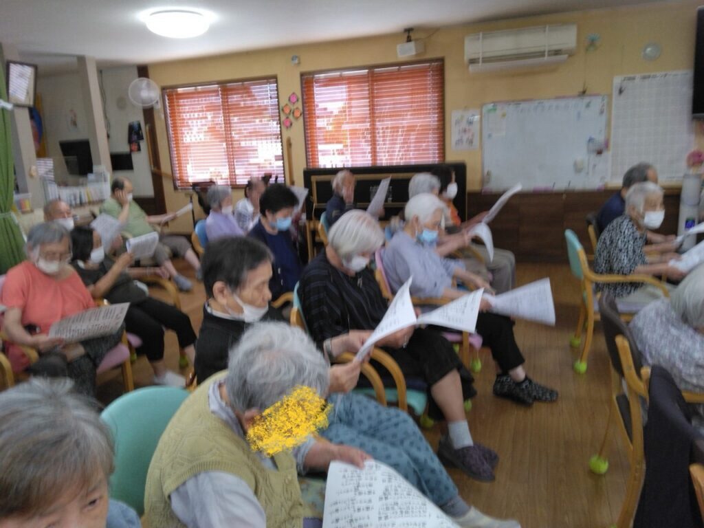 歌詞カードを見ながら懐かしい童謡と歌謡曲を歌いました✨