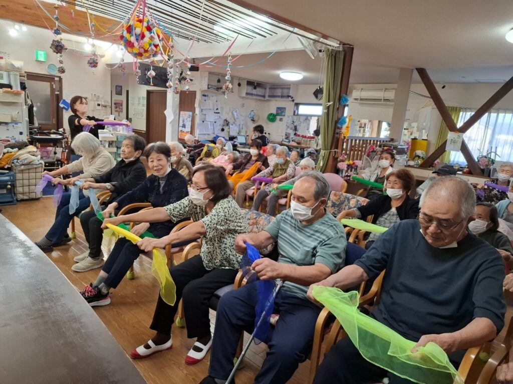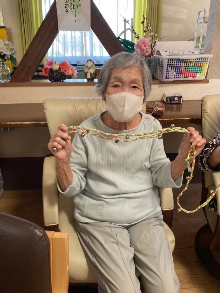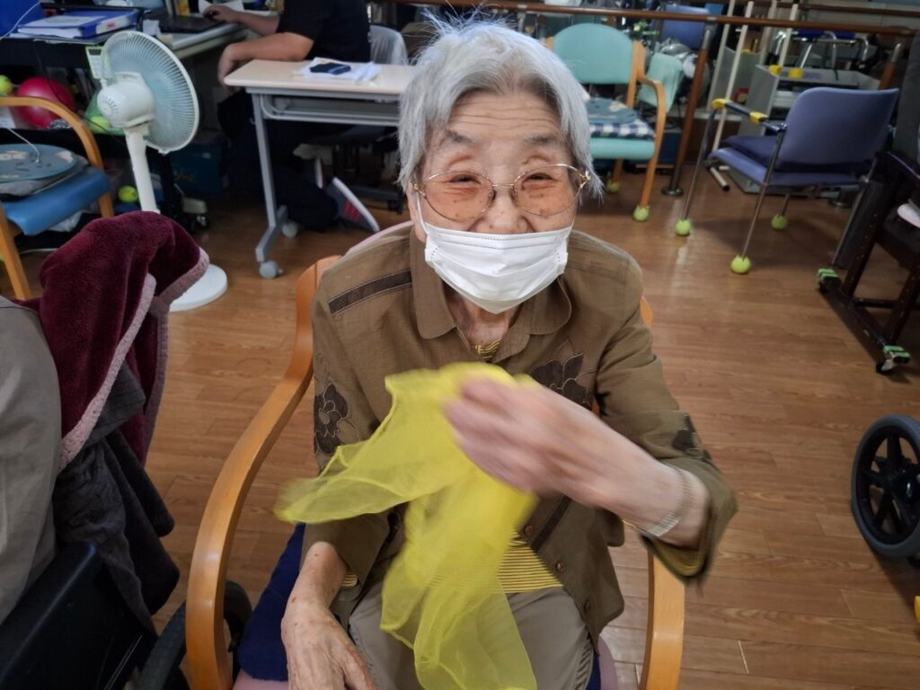 音楽療法by momohana2024年10月11日 今月も音楽療法の日がやって来ました😃 口腔体操ソングから始まり、虫の声の歌を歌いながら鈴を虫の声にみたててならしました🎶 みんなでスカーフを頭に被ったり、ねじったりしました😃 スカーフを投げたり回したり音楽に合わせて体操しました😊 タグ:スカーフ口腔体操歌笑顔虫の声音楽療法