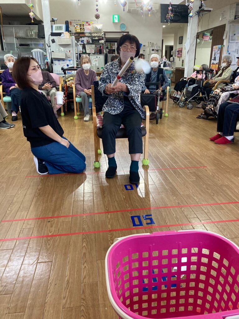 今日のレクレーション😁by momohana2024年10月29日 今日のレクレーションは、棒に紙コップをひっかけてカゴに入れるゲームをしました🎶 なかなかカゴに入らず皆さん、カゴに入った時は、とても嬉しそうな様子で盛り上がりました😊 投げ方にも個性があり、優しく投げる方や力強く投げる方とさまざまでした😁 タグ:個性、盛り上がり投げ方楽しい笑顔