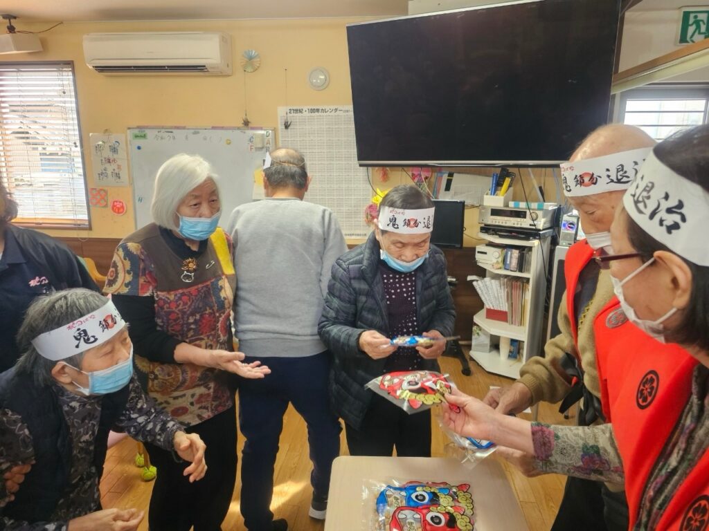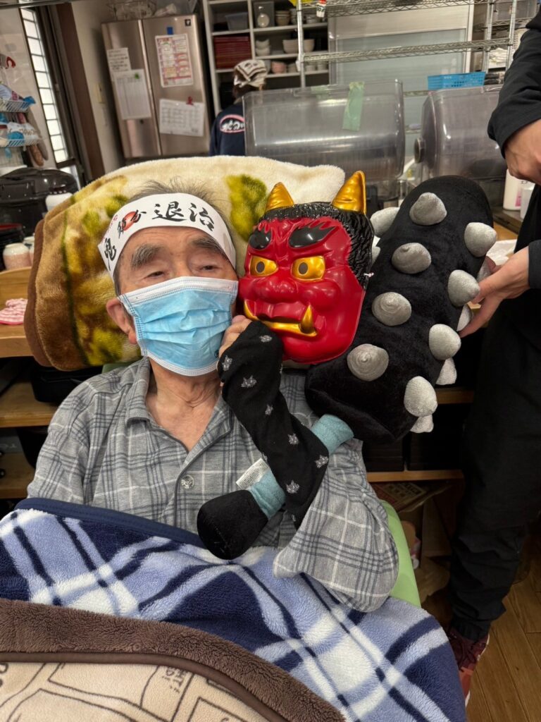 きょうは節分ですby momohana2025年2月3日 年男と年女が3名が鬼はそとー福はうちーと大きな掛け声と共に豆まきします 桃のはなにも何やら鬼がやってきて・・・ 桃のはなの鬼さんはとても怖いです😱 桃のはなのアイドルも泣かせてしまいました💦 豆はお家にかえって食べて ます 皆さん楽しんで笑顔いっぱいでした 最後は福門を通ってからみなさん帰ります 鬼は退治したので今年もみなさん元気に過ごしましょう タグ:2月恵方巻き節分美味しい鬼退治