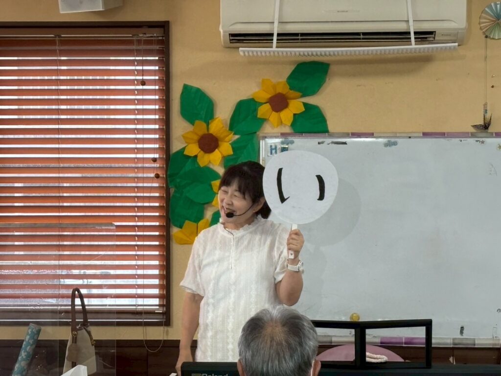 先生手作りの「い」と「ほ」のうちわで口腔体操を行いました😊