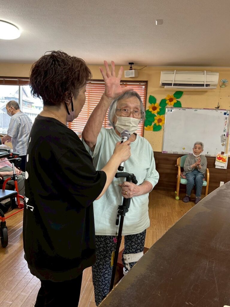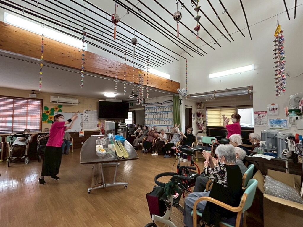 利用者さんにも踊っていただくため、盆踊りの練習も行っています。