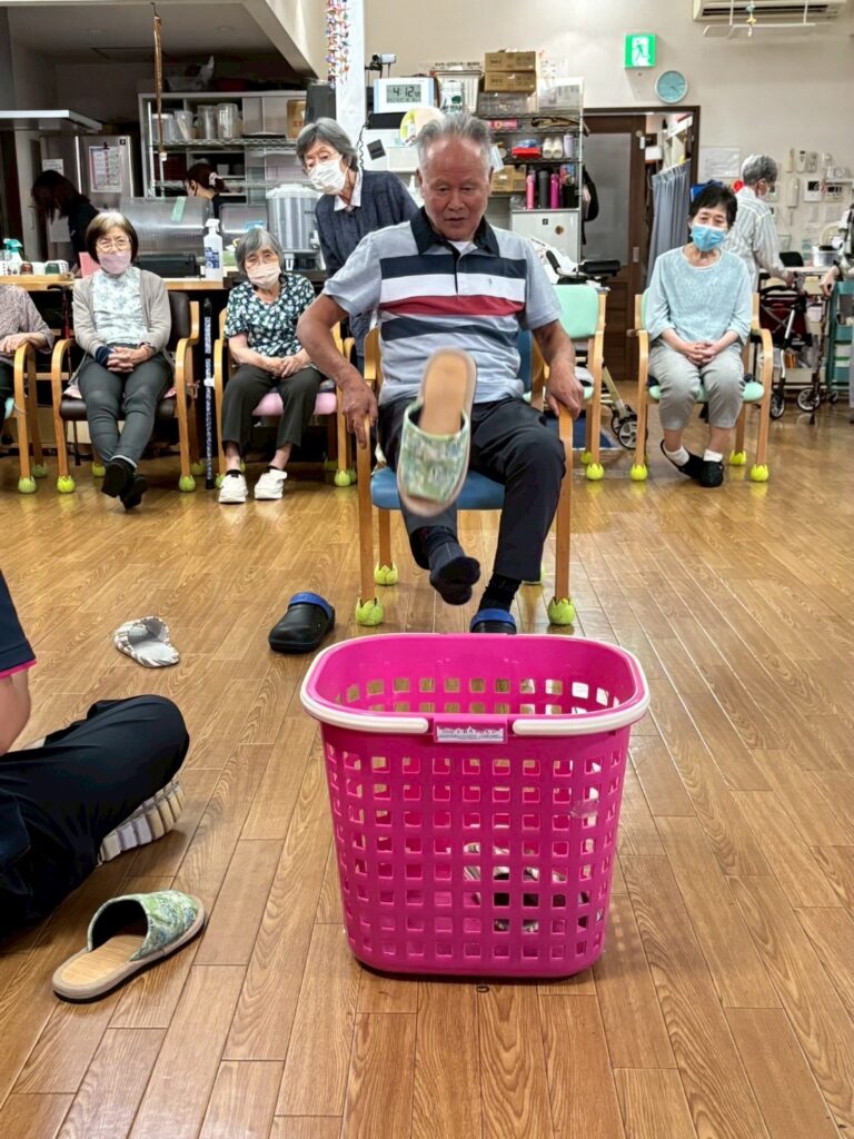 今日のレクはスリッパ飛ばし!!by momohana2025年8月9日 今日のレクレーションは、スリッパ飛ばしをしました😊 いつもながら、皆様真剣そのもの! 失敗して、あー!!ってなる方や、 入ったー!と喜ばれる方、様々ですが、周りの方々の応援もすごいんです♡♡ 桃のはなの利用者様はすごいなぁと、今日も楽しいレクレーションでした😊 タグ:スリッパ飛ばしみんなの応援レクレクレーション下肢訓練