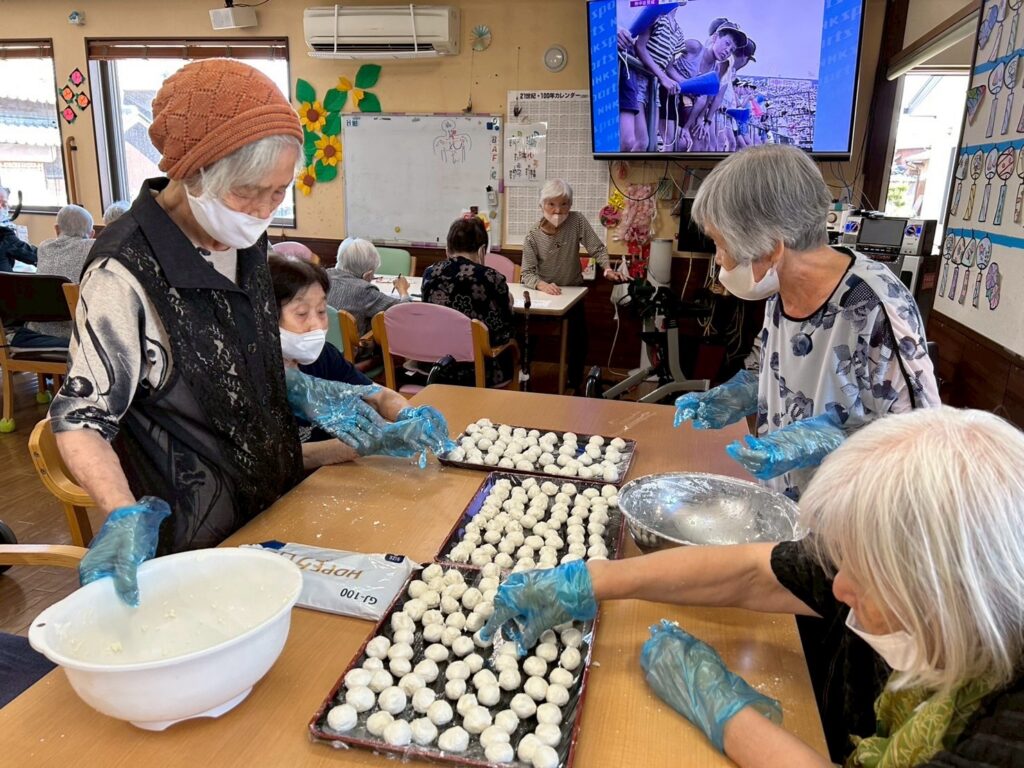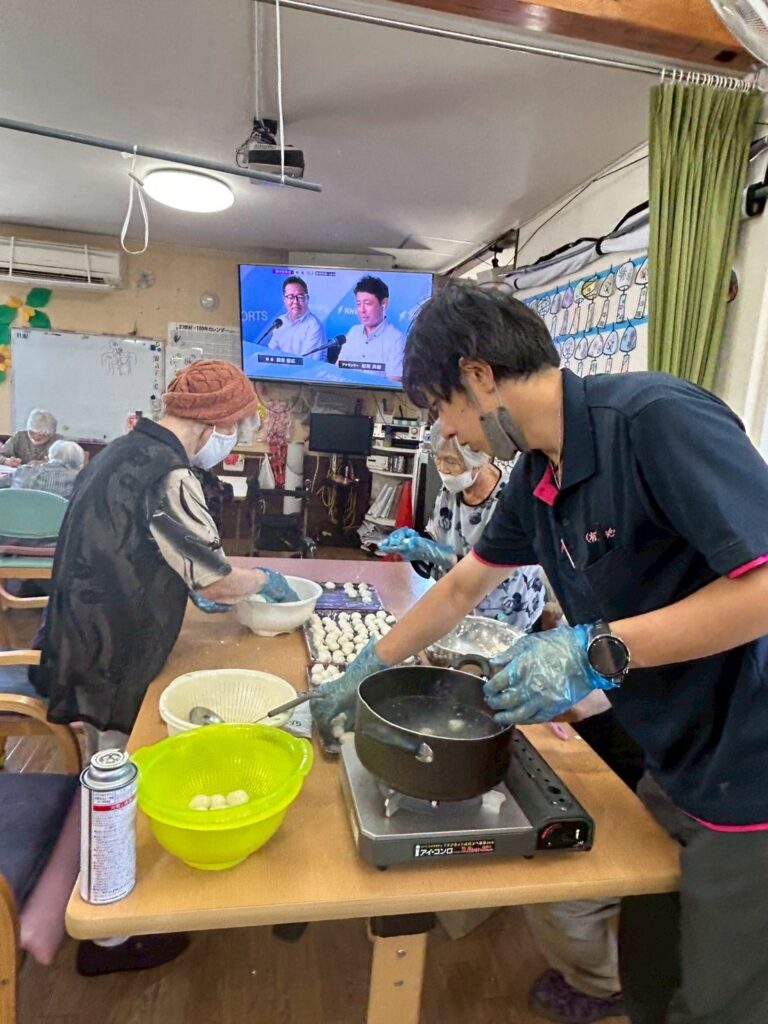 お団子作りに参加されない方はぬり絵をしたり野球観戦をされていました😊