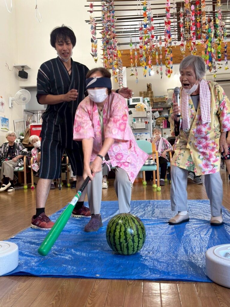スイカ割りの様子🌳🍉