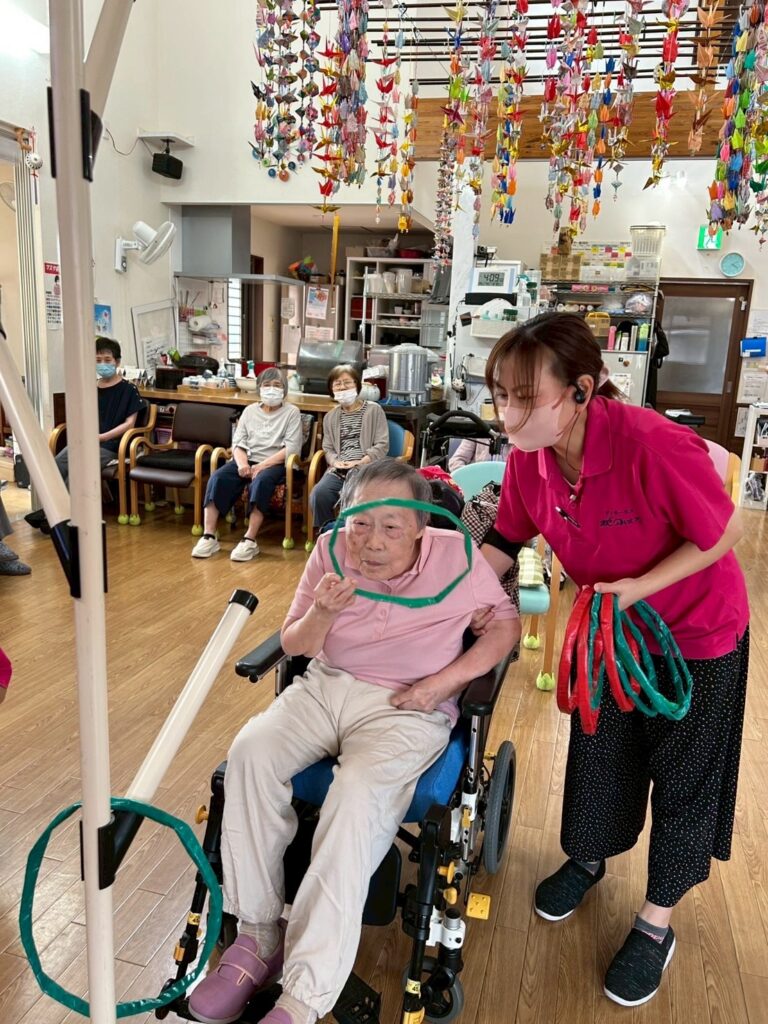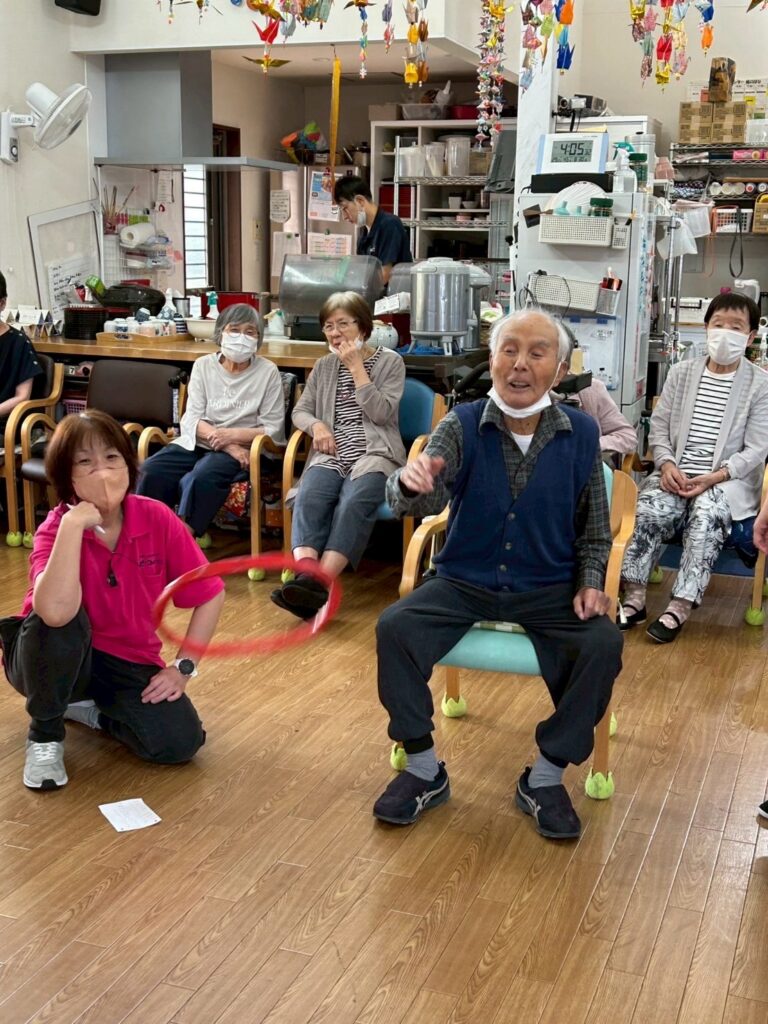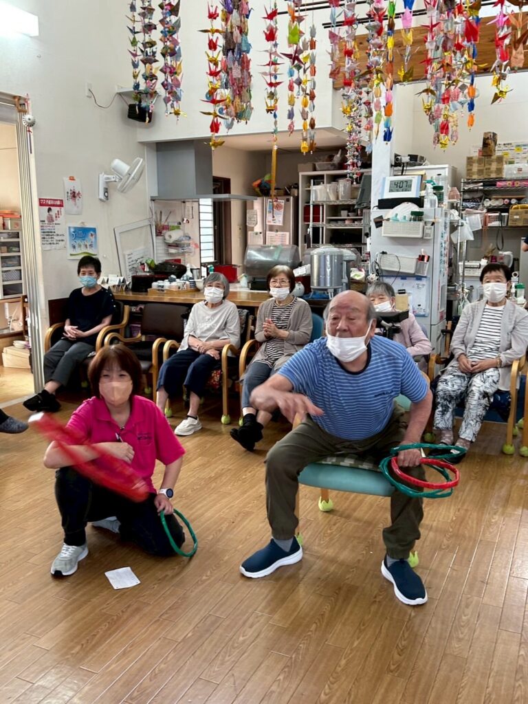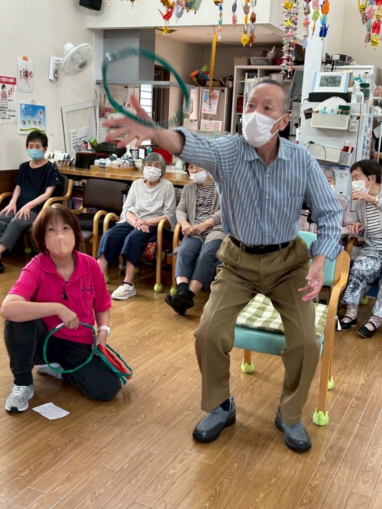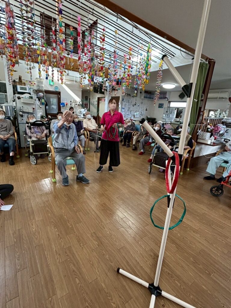 輪投げは機能訓練でも取り入れていますが、レクリエーションでも大盛り上がりでした🎶