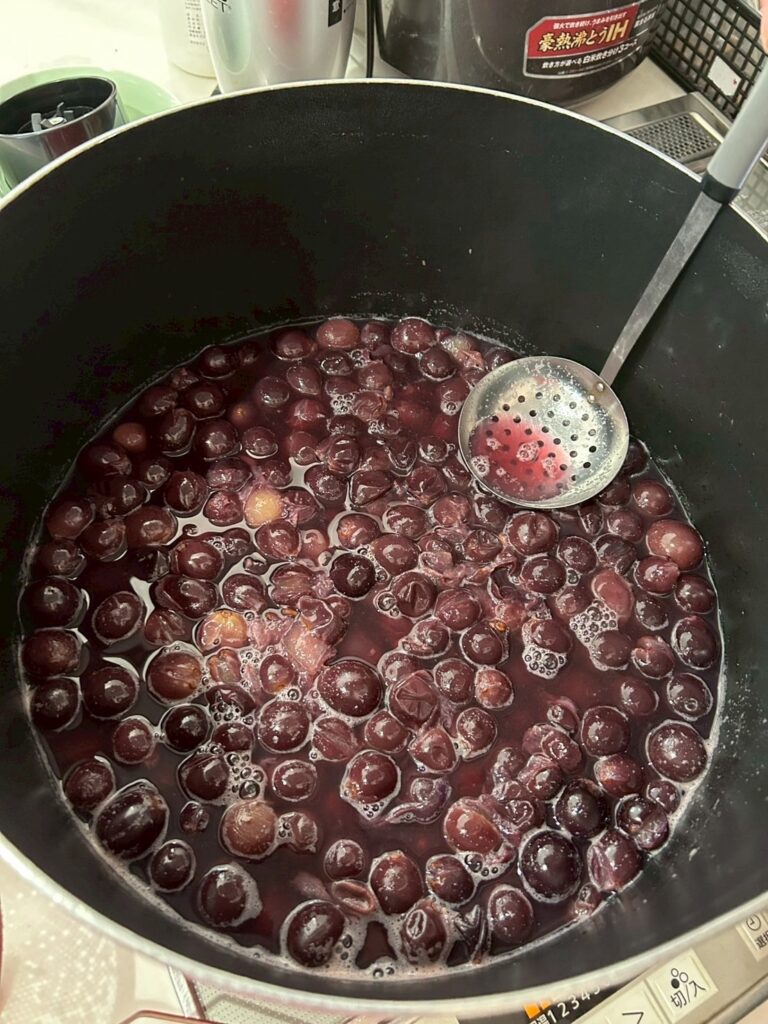 この後皮や種をこすと、ぶどうジュースのできあがり(´•ᴗ• ก )՞ ՞