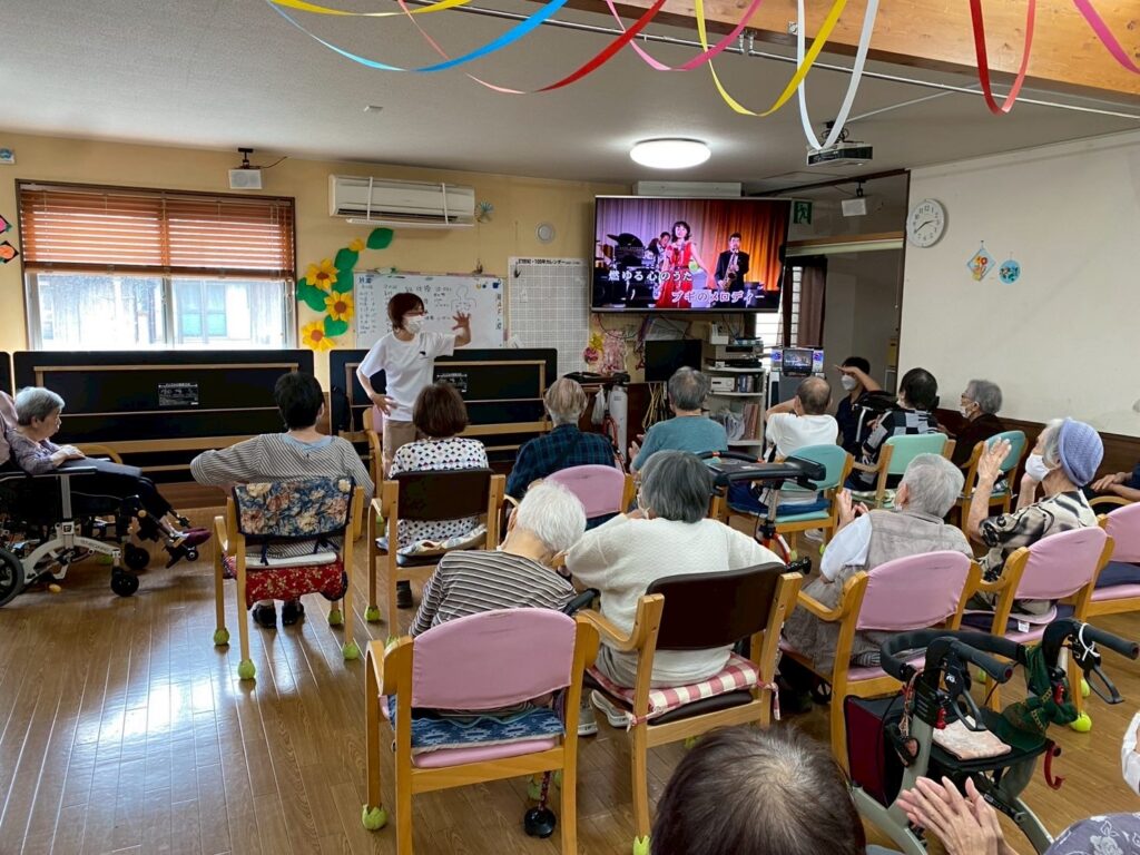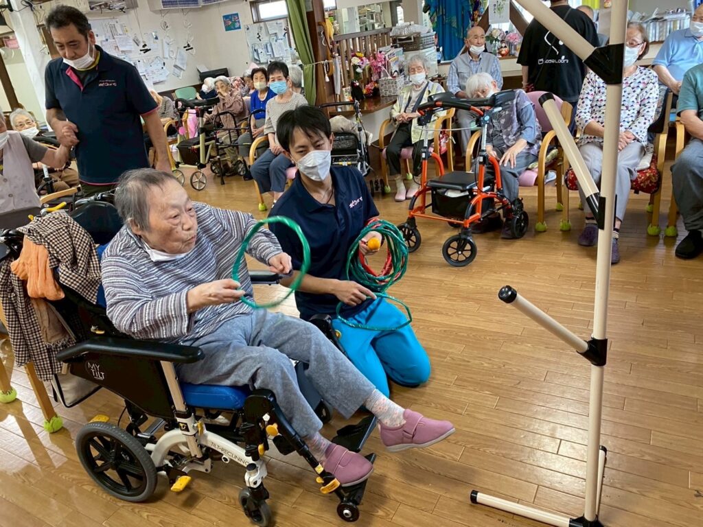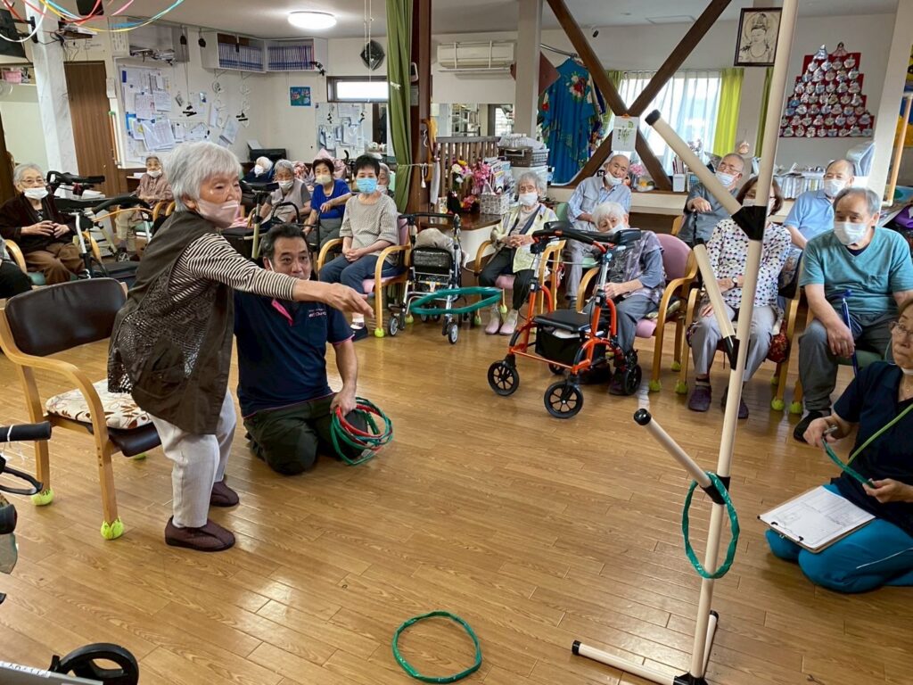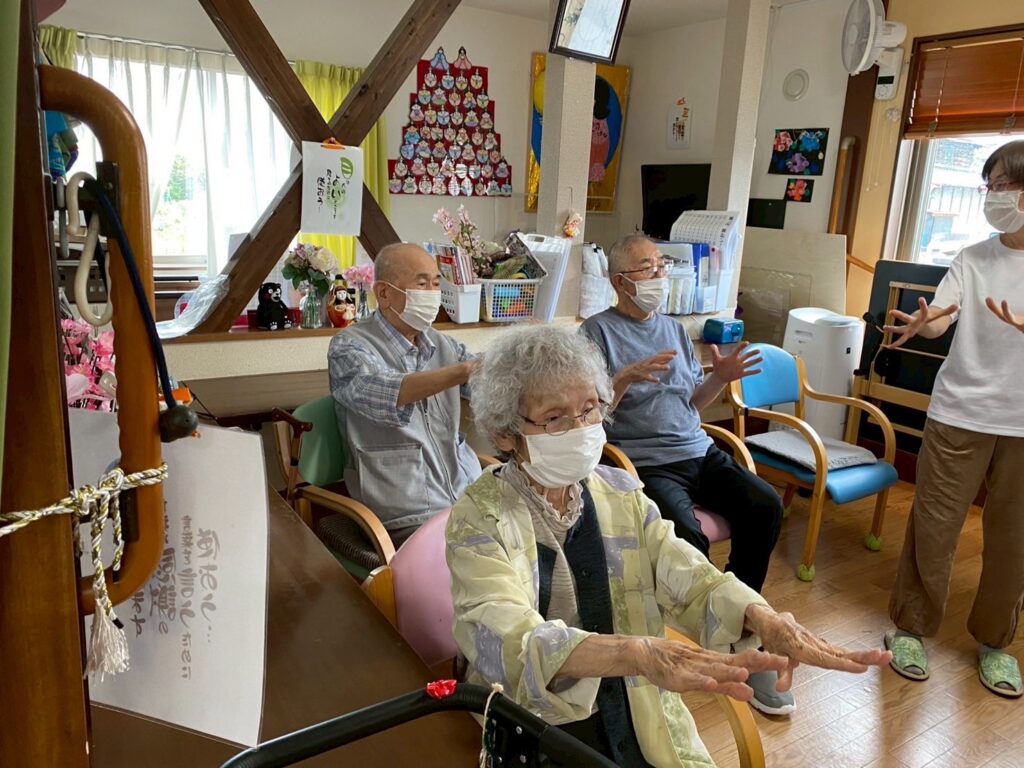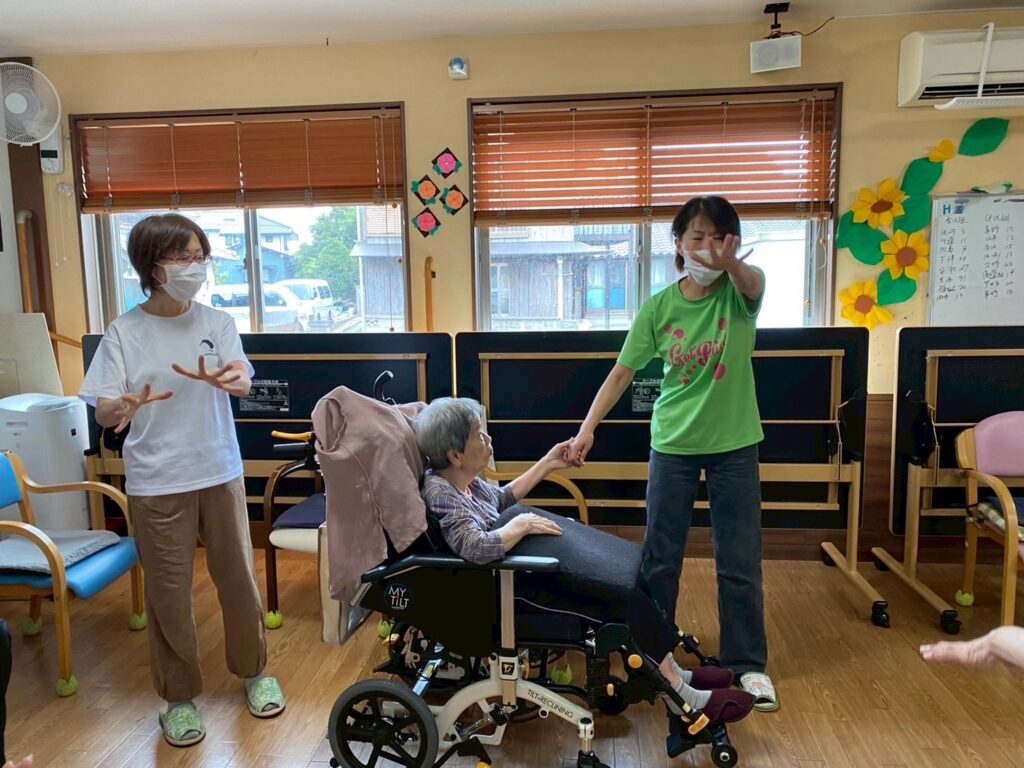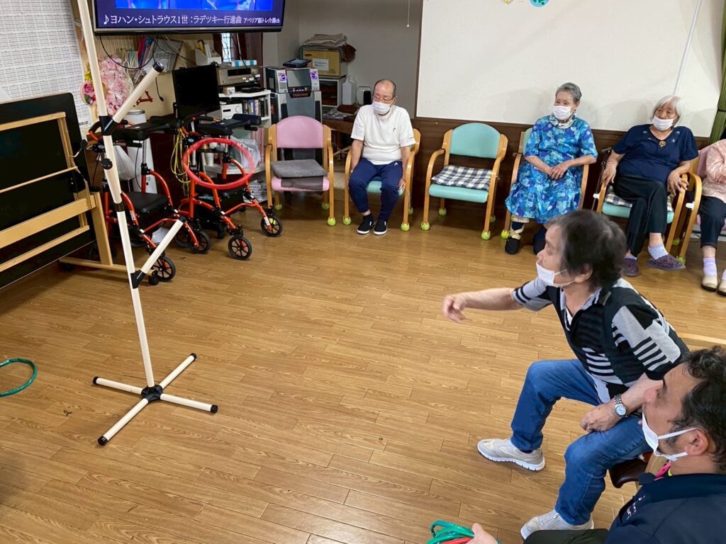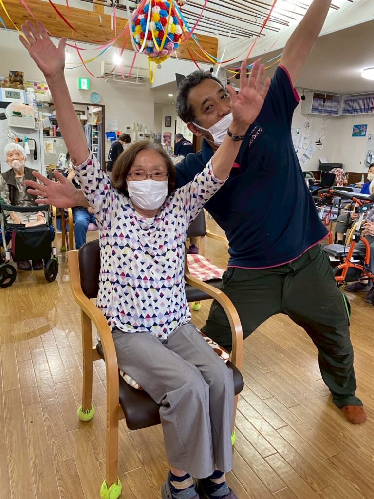 本日は〖笑いヨガ〗の先生たちが来られ、高齢者にもってこいのヨガを