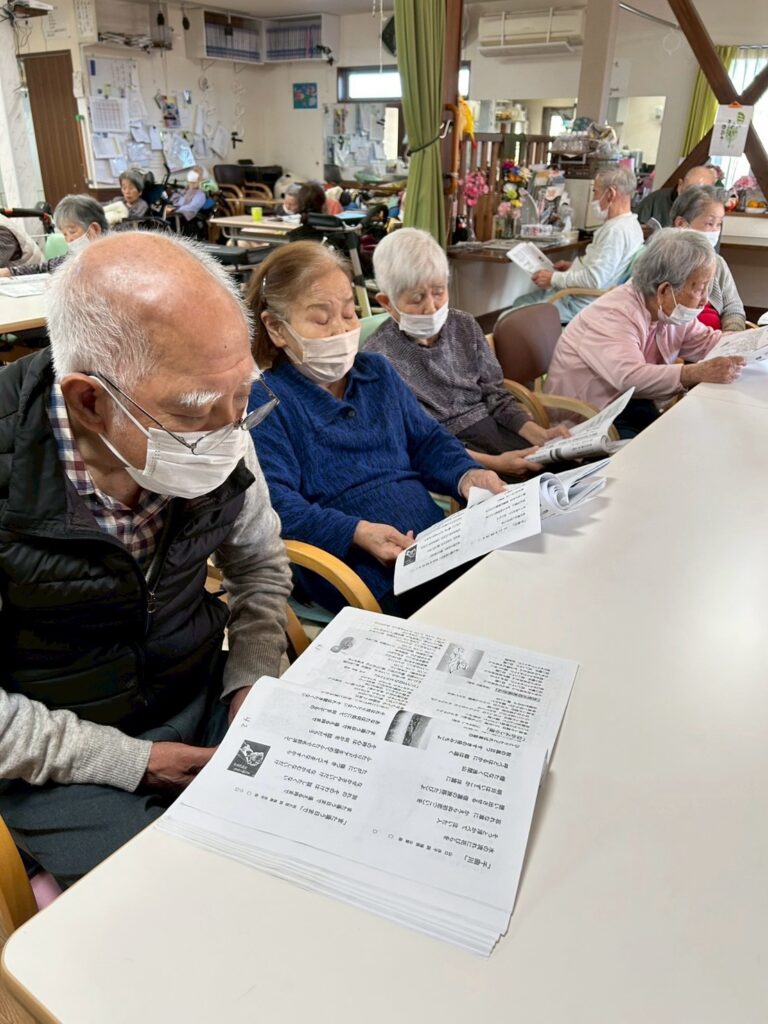 ハーモニカ演奏by momohana2025年11月15日 今日はハーモニカの日です(#´ᗜ`#)ニコニコ 曲に合わせてハーモニカを交換するそうで、先生は20個のハーモニカを用意されていました😯 ハーモニカ演奏に合わせてみんなで歌います 曲名だけだとなんの曲かなと、言っていた方も演奏が始まると、これ知ってる!と歌い始める方もいらっしゃいました。 歌詞カードの中からリクエストがたくさんありました(oˆ罒ˆo) 先生は演奏を始める前にその曲にまつわるエピソードもお話しされていました。 歌詞を見ながら懐かしそうに歌われていました😊 ハーモニカの音色と歌声が流れる穏やかな午後のひと時でした。 タグ:デイサービスハーモニカ演奏みんなで合唱レクリエーション懐かしい曲