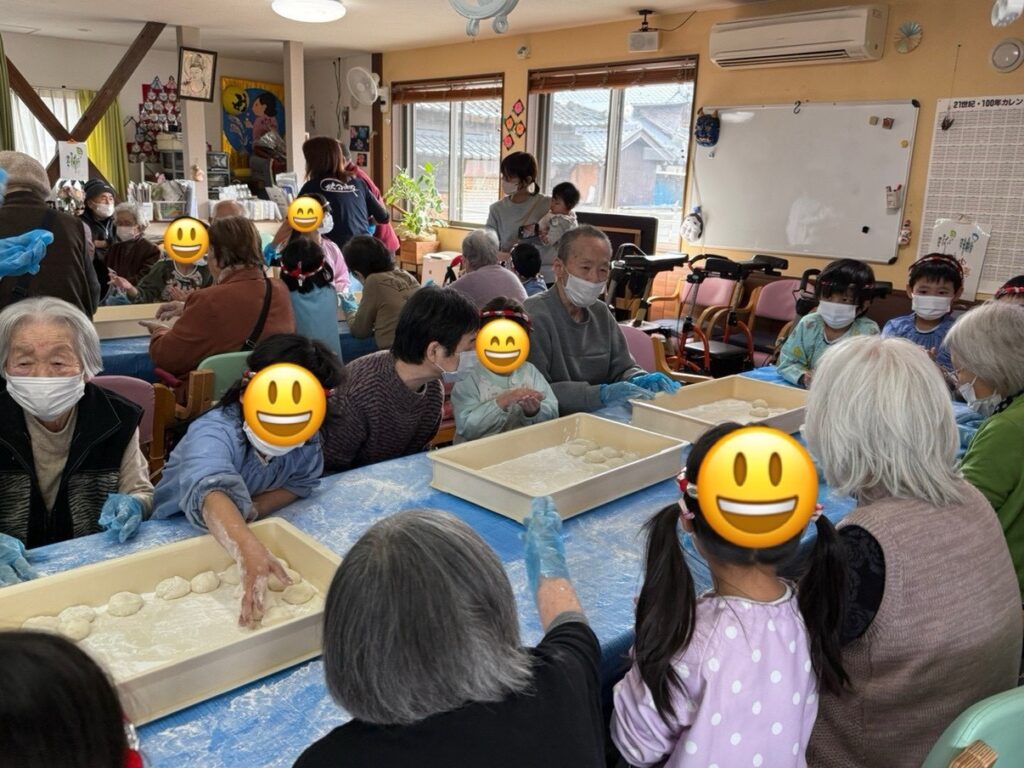 子供たちが帰ったあとも利用者様張り切ってお餅を丸めてくれました