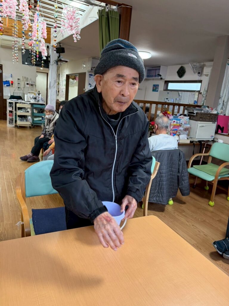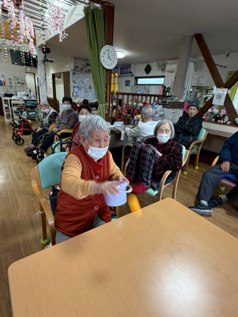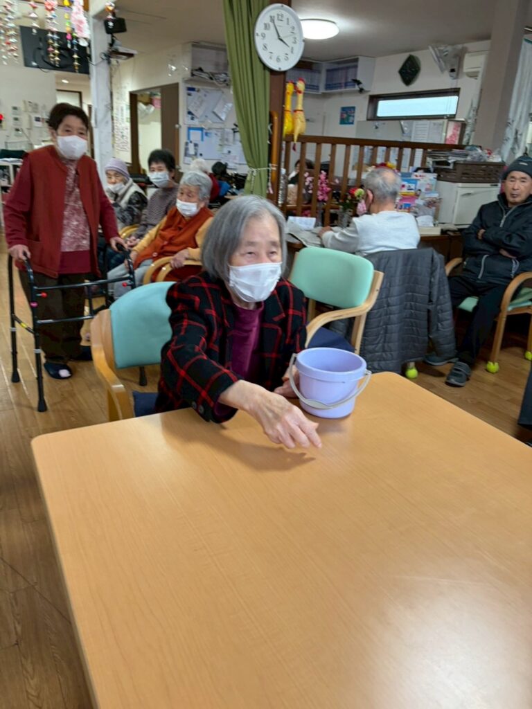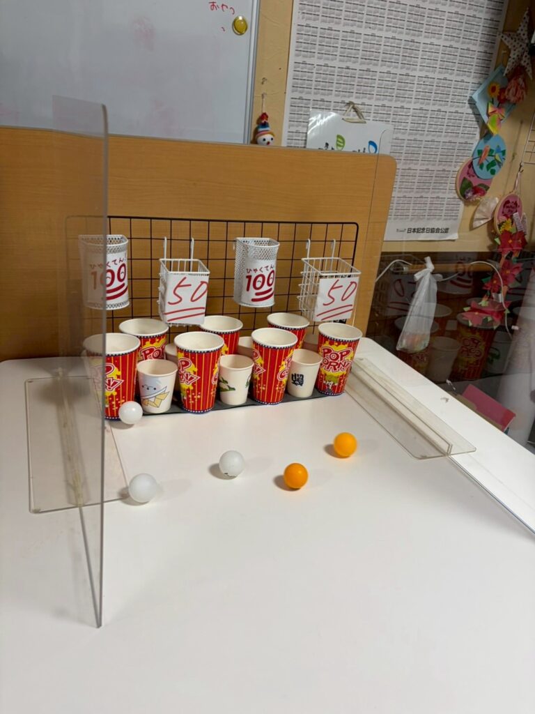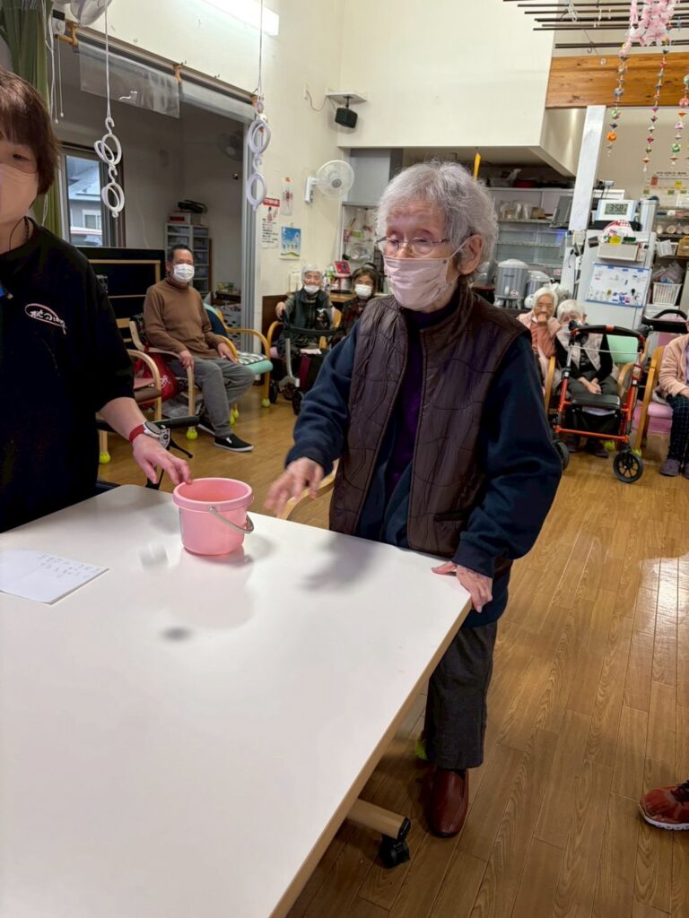 新しいレクリエーションのピンポン玉入れby momohana2026年2月25日2026年2月24日 今週は新しいレクリエーションとしてピンポン玉入れをしました 10個のピンポン玉をバウンドしてカップに入れるゲームです😚 下のカップに入れば10点、上の段のカップに入れば高得点を期待できます😊 意外となかなかカップに入らないん です😅 でも皆さん、一生懸命投げられていました 座って投げる方や 立って投げる方もいて投げ方も様々です カップにいくつか入っていますね😄 今のところか日曜日に270点の高得点をあげた方が暫定1位です(ृ´͈ ᵕ `͈ ृ ) さぁ今週の1位は何点でしょうか?皆さん、頑張って💪💪 タグ:デイサービスピンポン玉入れ新しいレクリエーション楽しい