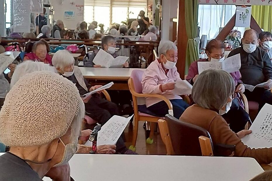 先生こ優しいピアノの音色に合わせてみんさんで歌を口…