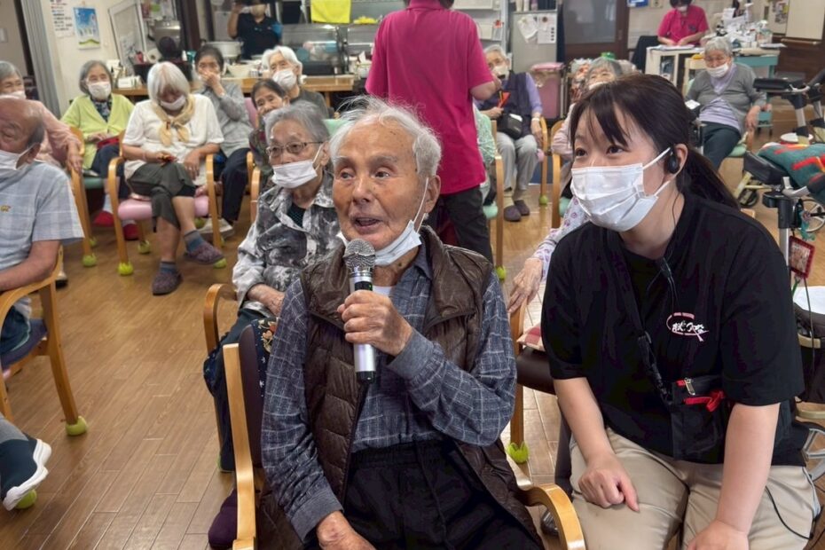 利用者様によって立って歌う方、座って歌う方色んな利…